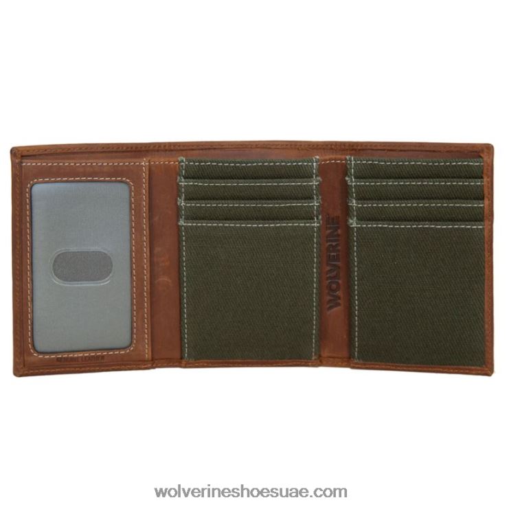للجنسين محفظة قماشية وجلدية ثلاثية الطي X000RZ280 Wolverine بني / زيتون